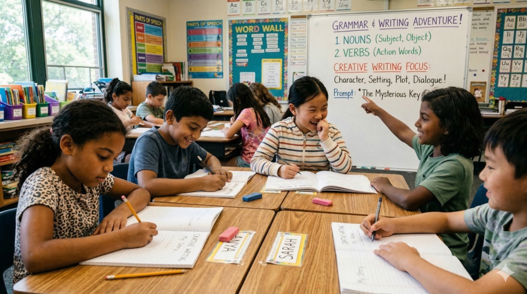 This program focuses on building strong grammar fundamentals along with creative expression. Children learn how to form correct sentences and express their thoughts clearly. It improves both academic performance and communication skills.