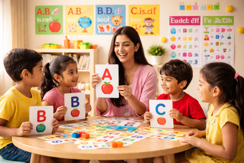 Phonics helps children develop strong reading and pronunciation skills through sound-based learning. It builds the foundation for reading by teaching how letters and sounds work together. This makes reading easier, more accurate, and more confident